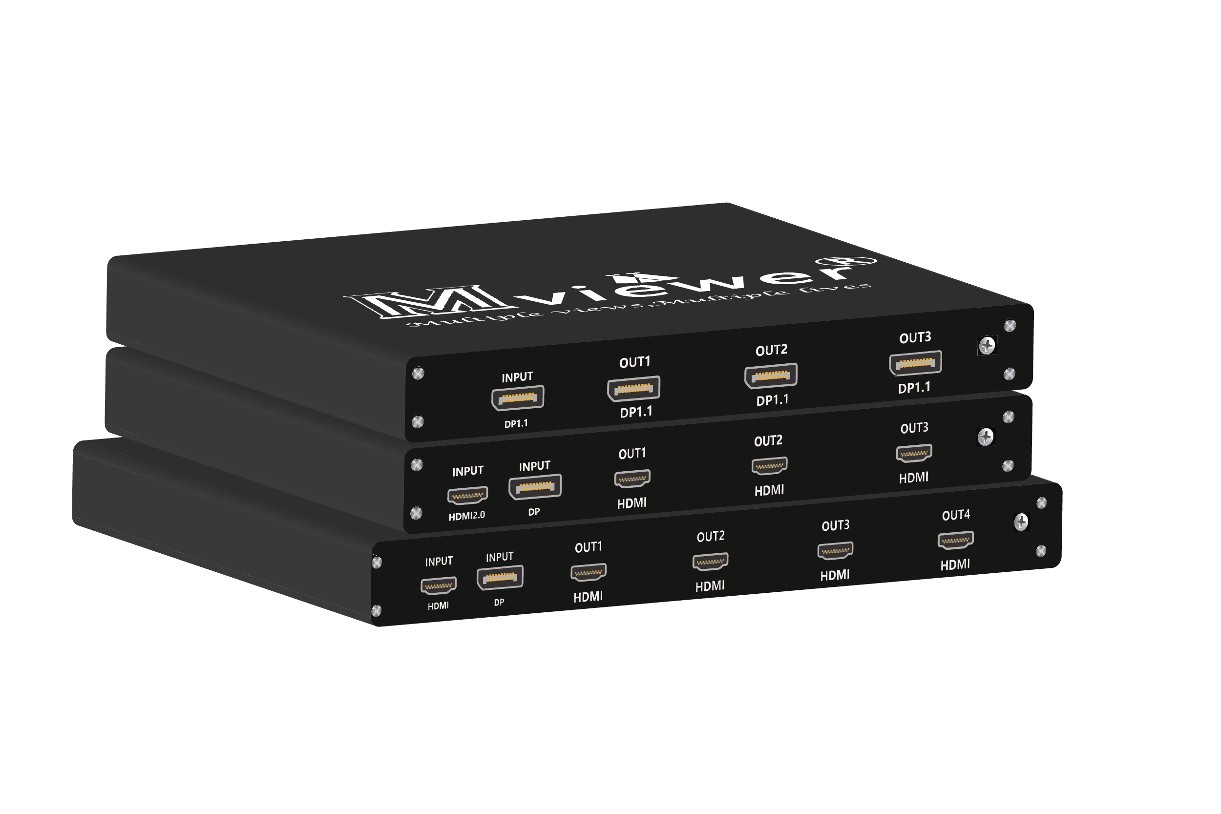 MV30X series can drive 3-4 displays from one signal of DP/HDMI in classic rectangular 1x3、1x4、2x2、3x1、4x1. And the single output can support up to 1920x1200@60Hz.
