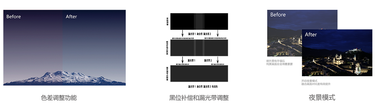 色差調整,暗場補償,多階融合處理,夜景模式等高級功能再次升級,助力最終呈現完整統一的融合畫面