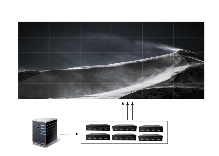 不同型號(hào)設(shè)備分別支持將單路DVI/DP輸出至2-6顯示端,同時(shí)支持信號(hào)垂直、水平和MXN輸出