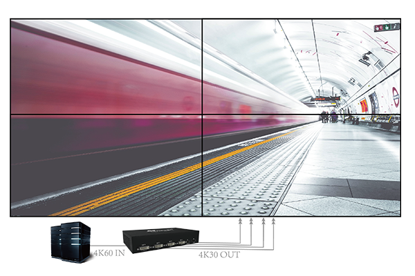 MV304-4K60支持一路DP1.4/HDMI2.0信號輸入,可支持4K60信號點(diǎn)對點(diǎn)傳輸,實(shí)現(xiàn)大屏顯示