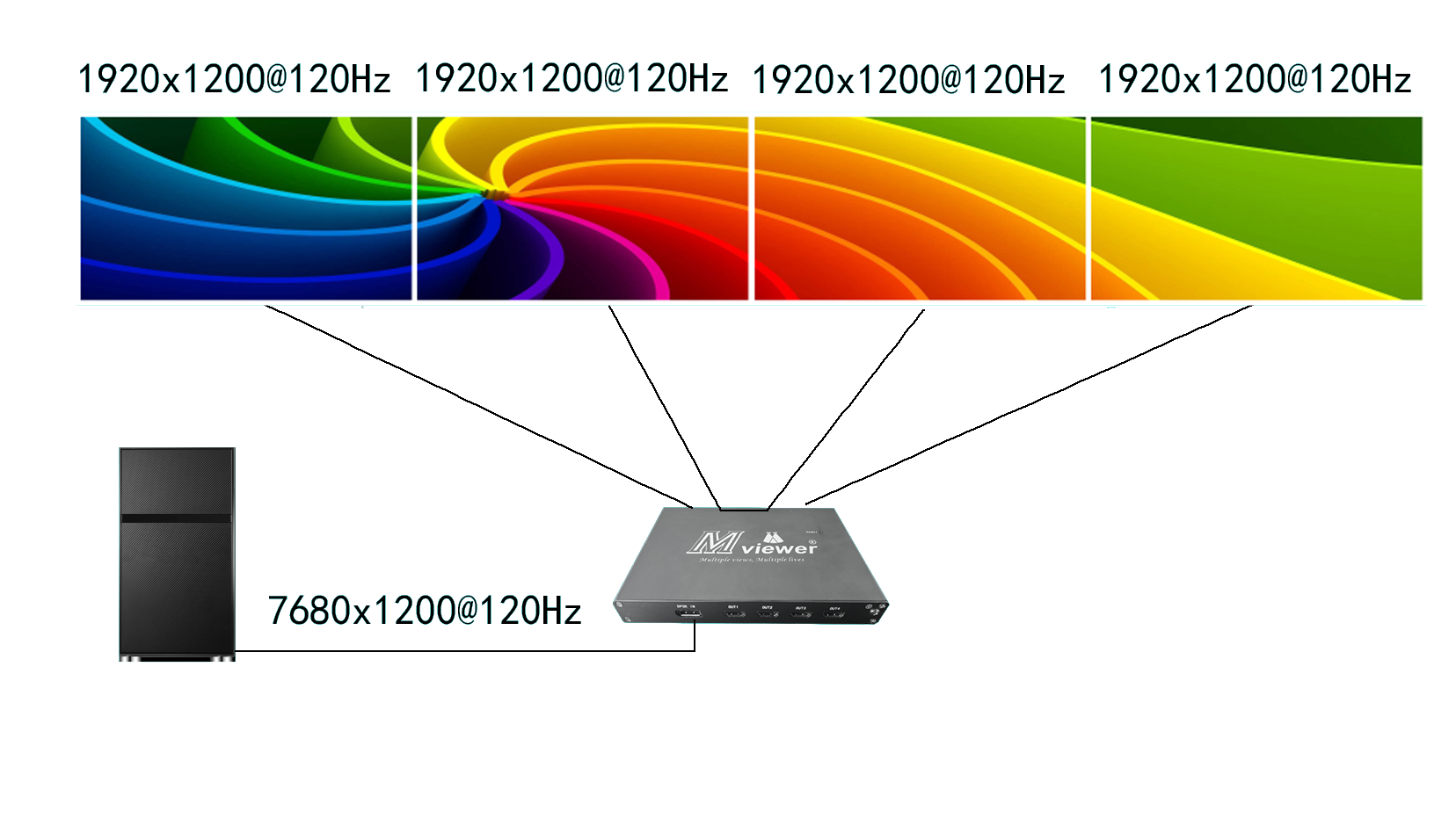 支持7680x1200@120Hz輸入,4路1920x1200@120Hz輸出